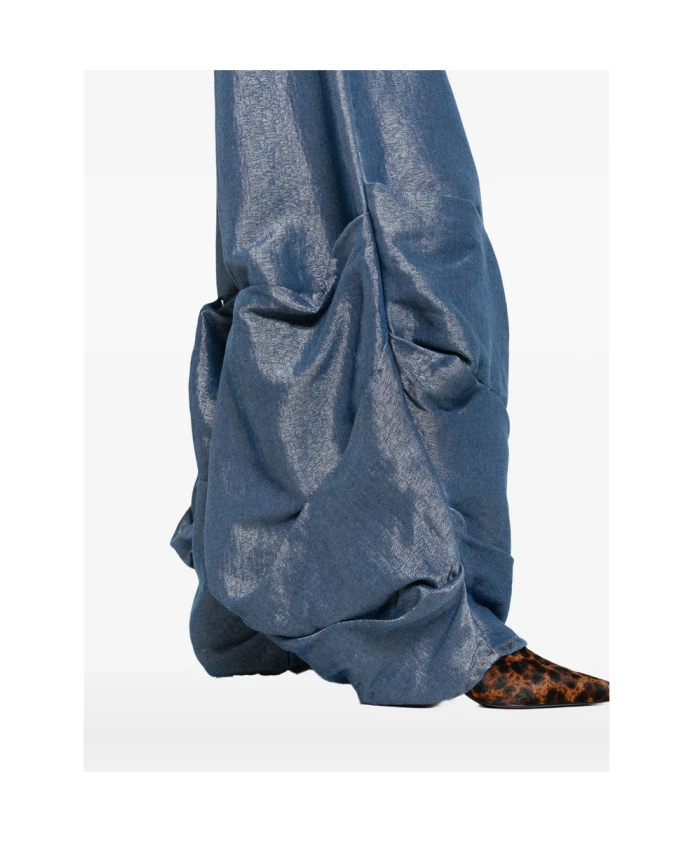 Широкие брюки Ganni с присборенной отделкой и пятью карманами создают расслабленный, современный силуэт, идеально подходящий для повседневной носки. Ключевые особенности: Синий | Пять карманов | Шлевки для ремня | Присборенная отделка | Широкие штанины | Размеры и посадка: Широкий крой