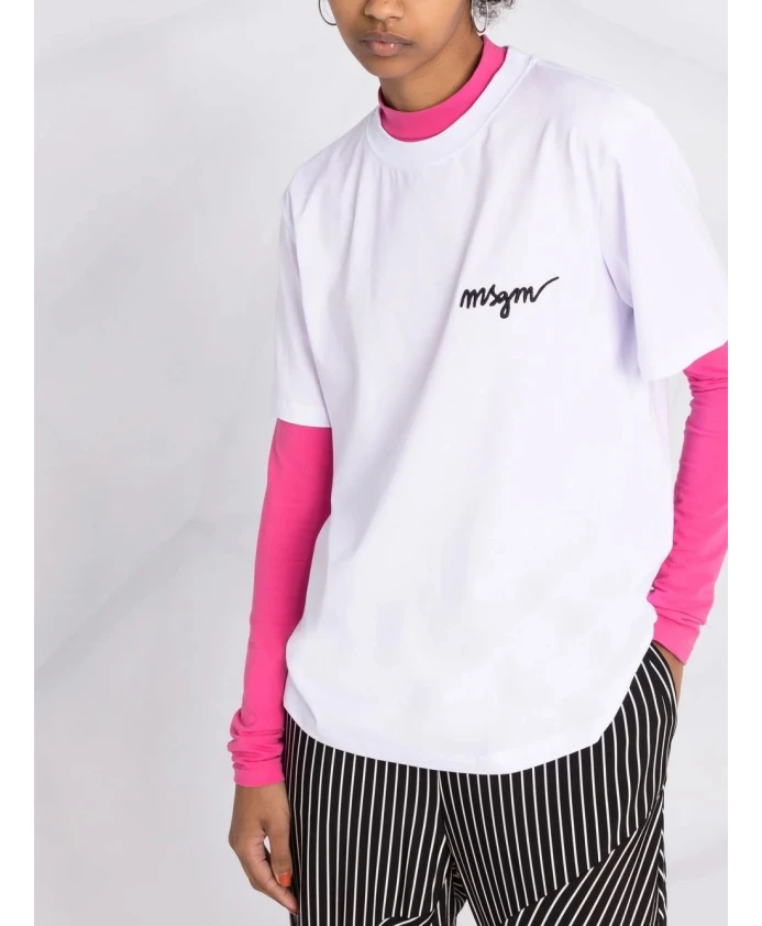 Обновите свой гардероб с помощью этой элегантной белой футболки от MSGM. Изготовленная из 100% хлопка, она обеспечивает максимальный комфорт и стильный вид. Идеально подходит для повседневных прогулок или для сочетания с любимыми джинсами. Обязательный элемент гардероба каждой модницы!