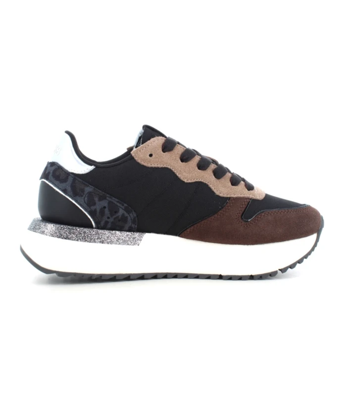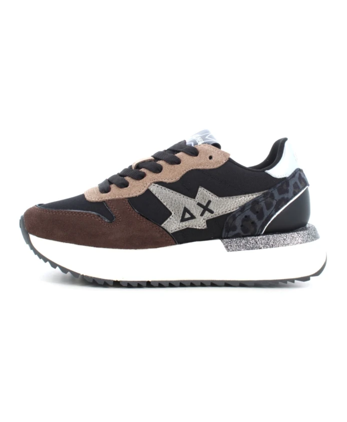 Подчеркните свой стиль с помощью этих женских кроссовок Sun68. Изготовленные из сочетания замши, ткани и кожи черного цвета, эти кроссовки идеально подойдут для осенне-зимнего сезона. Резиновая подошва обеспечивает комфорт и долговечность, делая их стильным выбором для любого наряда.