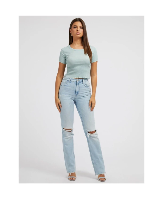 Оставайтесь стильной в этой укороченной женской футболке Guess Jeans. Она имеет укороченный крой, круглый вырез, короткие рукава и вышитый логотип. Удобна в ношении благодаря ткани, которую можно стирать в машинке. Заказывайте свой обычный размер. Состав: 97% полиэстер и 3% эластан.