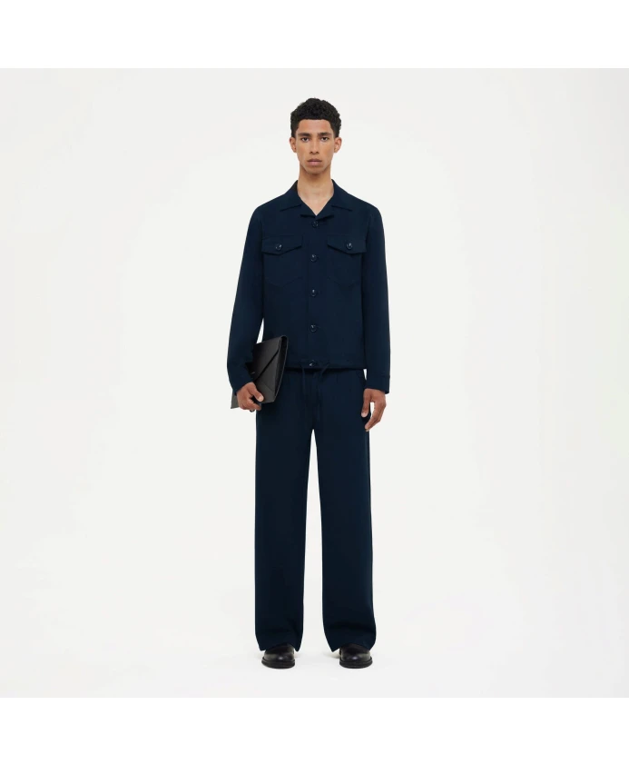 Повседневные темно-синие брюки с резиновой нашивкой Flâneur Atelier. Изготовлены из смесовой хлопковой ткани (63% полиэстер, 32% вискоза, 5% эластан). Сертифицированы GOTS за экологически и социально ответственное производство. Идеально подходят для мужчин, ценящих стиль и комфорт.