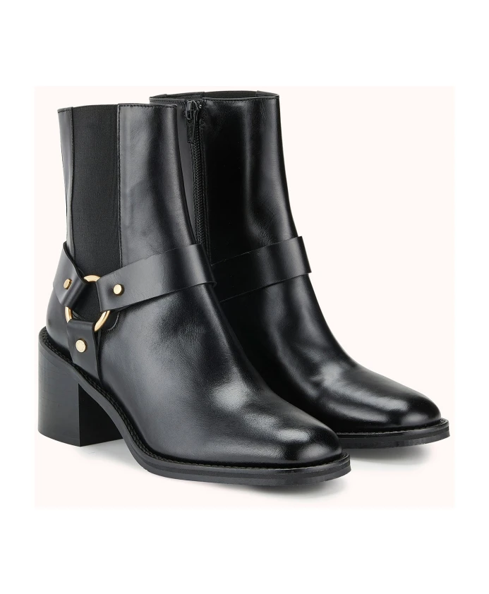 Дополните свой образ ботильонами на каблуке PHOEBE от Cosmoparis. Эти шикарные черные кожаные ботильоны выполнены в стильном байкерском стиле с золотыми металлическими деталями, создавая одновременно рокерский и женственный образ. Идеально подойдут для обновления вашего гардероба.