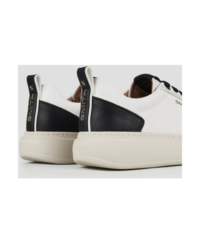 Чистые, лаконичные, вневременные. STONE - это минималистичные кроссовки от Smith X, сочетающие в себе городской дух и изысканный вкус в дизайне унисекс, созданном, чтобы выдержать испытание временем. В этой белой версии с черной пяткой. Логотип сбоку. Подошва 40 мм. Стелька 10 мм.