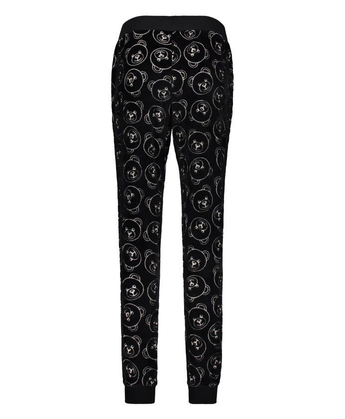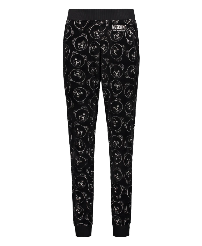 Бархатные брюки с вышитым логотипом и эластичными манжетами Moschino, черный