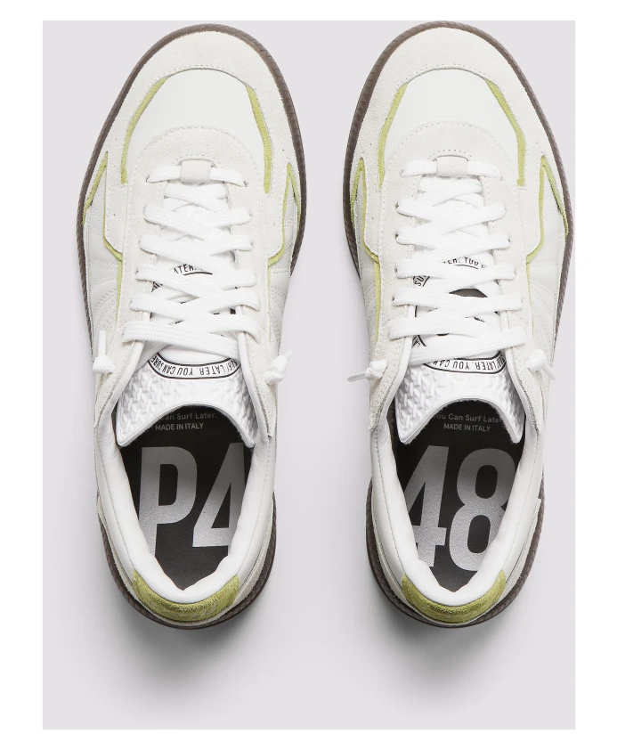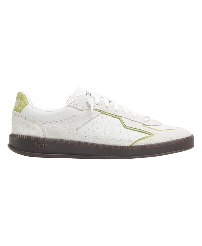 Бело-Зеленые кожаные кроссовки P448, белый