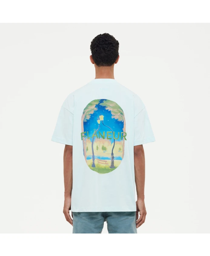 Оставайтесь стильными с этой мужской футболкой FLÀ‚NEUR, украшенной уникальным принтом «фонари любви» спереди и сзади. Изготовленная из 100% хлопка прохладного синего цвета, эта футболка - незаменимый элемент гардероба. Доступна в размере L, идеально подходящем для роста 188 см.
