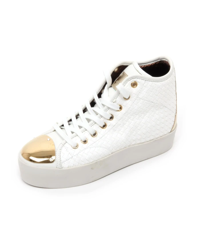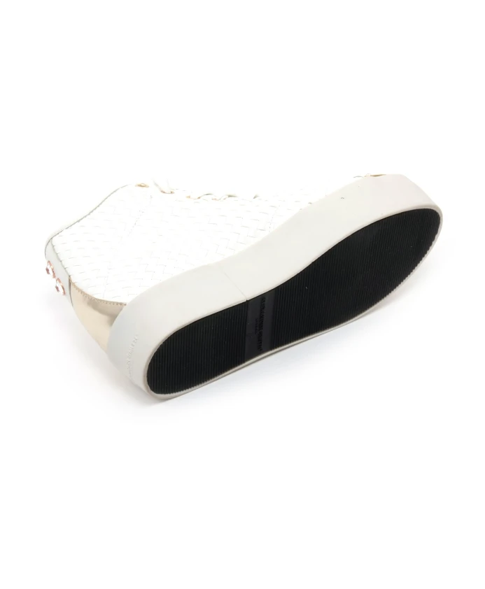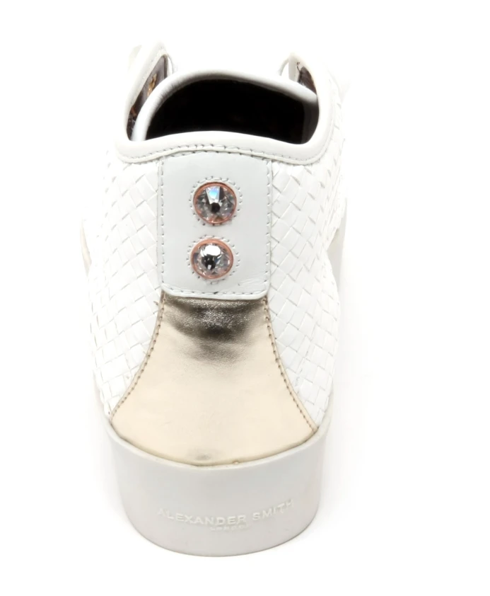 Пополните свою коллекцию кроссовок этими итальянскими кроссовками Alexander Smith. Модель F 6550 INTRE BIANCO, выполненная в уникальном кремовом цвете, идеально подойдет современной женщине. Доступны размеры от 36 до 38, длина стельки от 23 до 24 см. Высота каблука около 3,5 см.