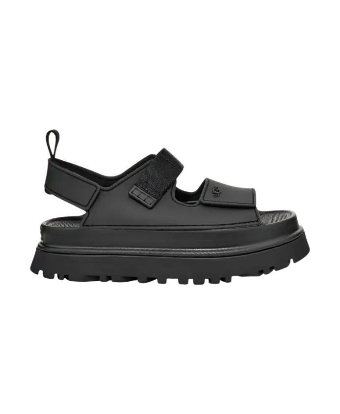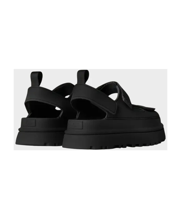 Оставайтесь в комфорте и выглядите стильно в этих черных женских сандалиях UGG. Сандалии с закругленным носком, тисненым логотипом, подошвой из пеноматериала EVA, застежкой на липучке и изготовленные из переработанного полиэстера, предлагают идеальное сочетание комфорта и стиля.