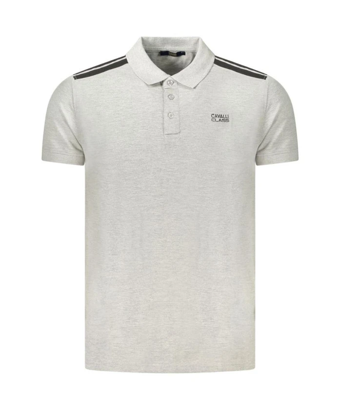 Полосатая рубашка-поло с современными деталями Cavalli Class, серый