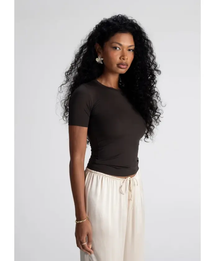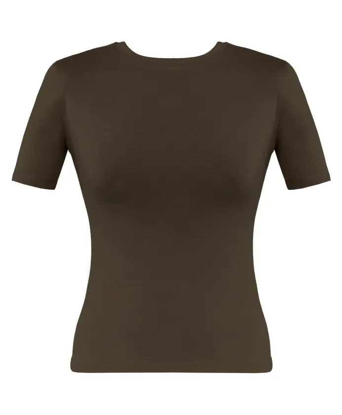 GUAJA. Эта футболка - универсальная вещь на каждый день, идеально подходящая для повседневной носки и простого многослойного образа. Четкие линии и нейтральный коричневый оттенок позволяют легко сочетать ее с различными нарядами. Ключевые характеристики: Коричневый | Castanho