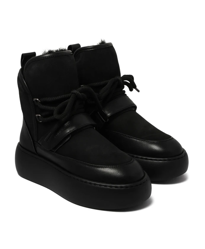 Черные ботинки на платформе из овчины со шнуровкой Barracuda, черный