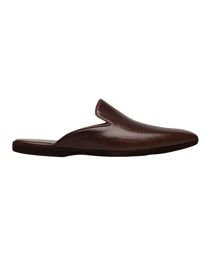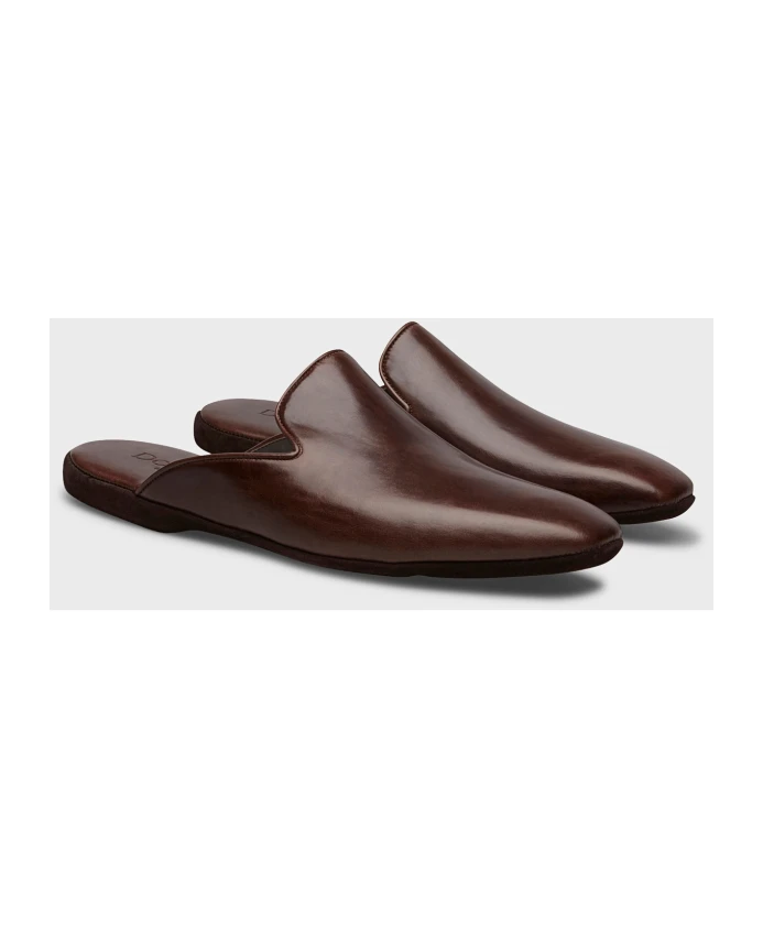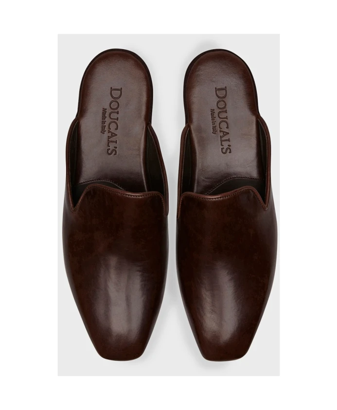 Doucal's представляет кожаные тапочки, изготовленные из гладкой темно-коричневой телячьей кожи. Они сочетают в себе элегантность и комфорт благодаря мягкой подошве и каблуку, обтянутому кожей. Ключевые особенности: Темно-коричневый | Телячья кожа | Каблук, обтянутый кожей |