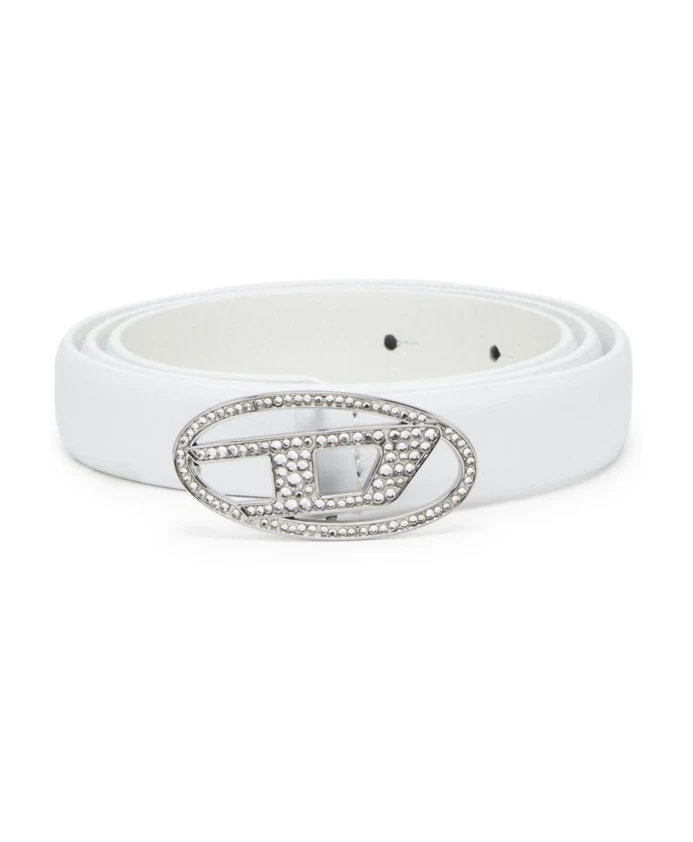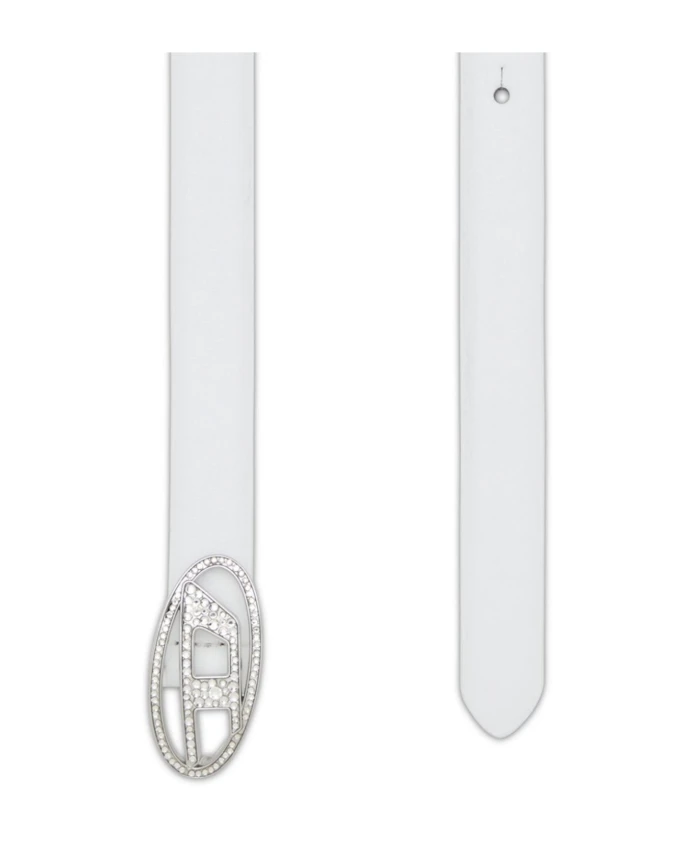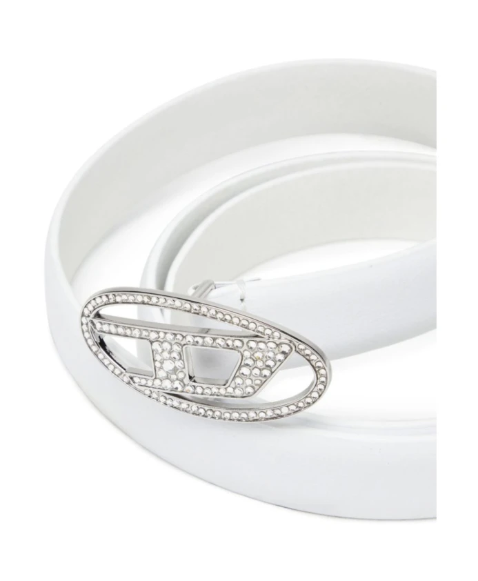 Ремень с кристаллическим логотипом и стразами. Diesel, белый