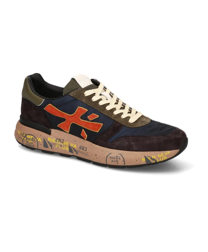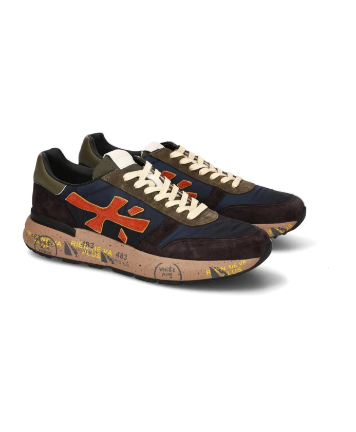 Синие кроссовки с оранжевым логотипом Premiata, синий