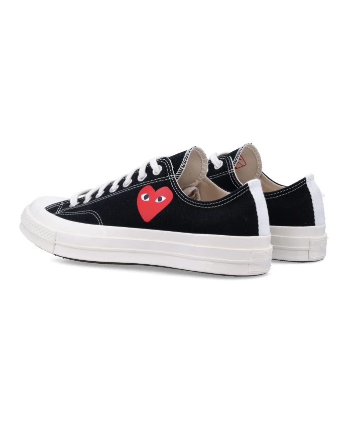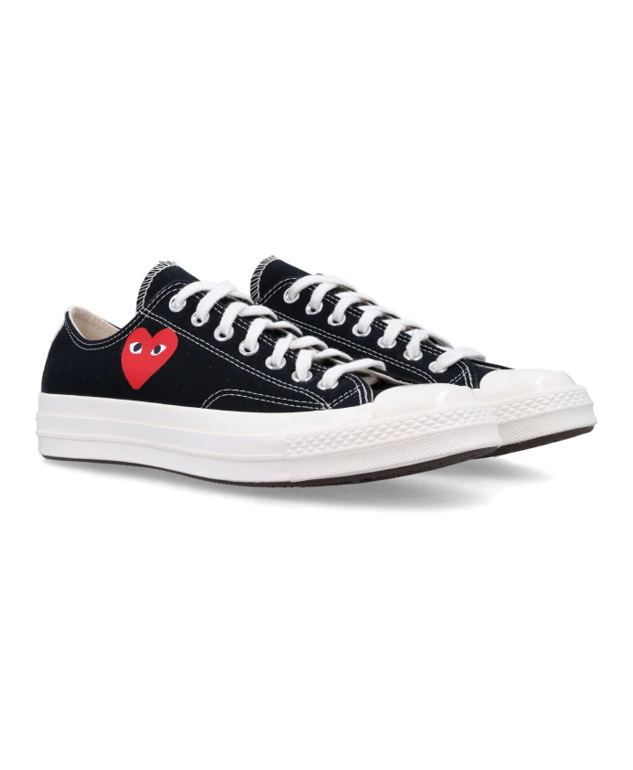 Обновите свою коллекцию кроссовок с помощью этих низких кроссовок с принтом в виде маленьких сердечек от Comme des Garçons x Converse. Модель имеет круглый носок, резиновый мысок, шнуровку, принт в виде маленьких сердечек и резиновую подошву. Идеально подходит для модниц.