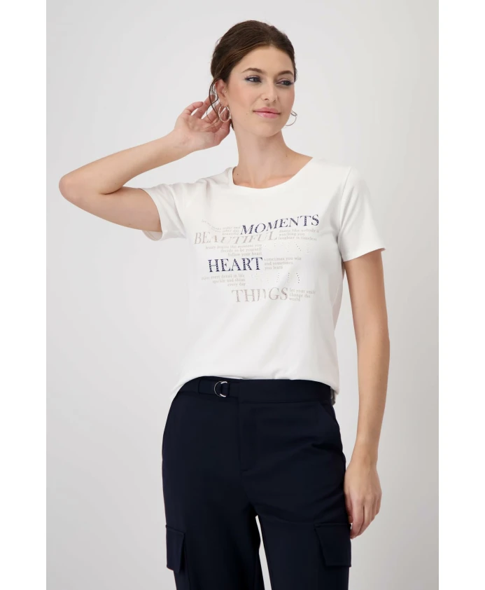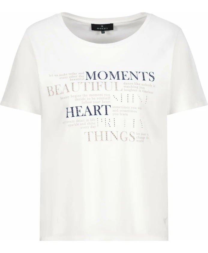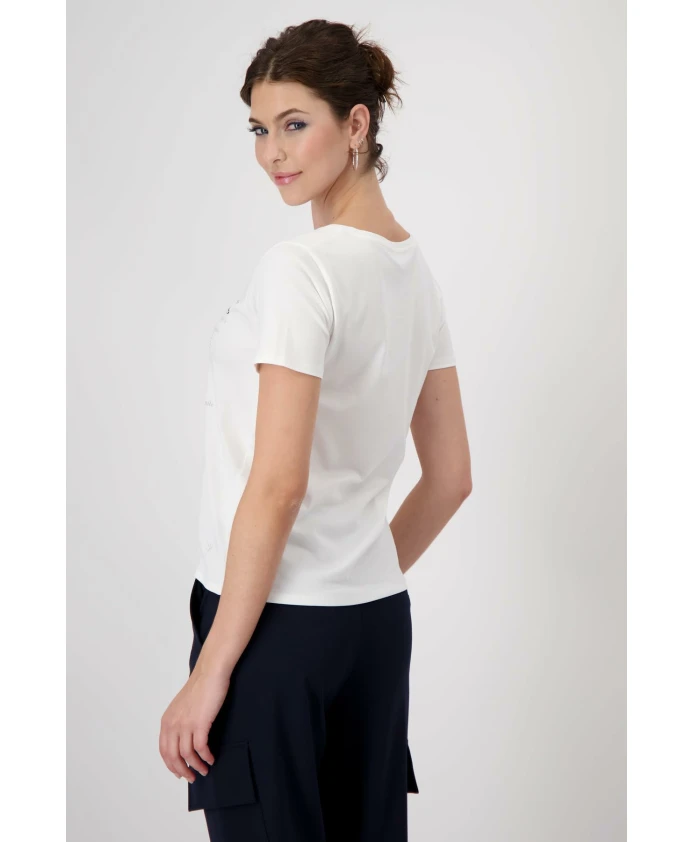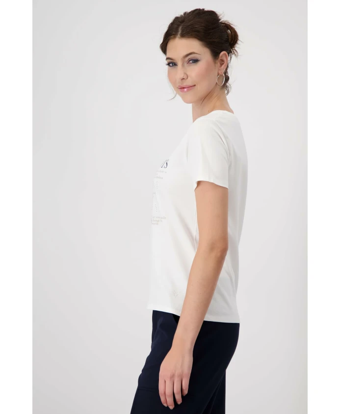 Футболка Monari в классическом дизайне, созданная для повседневной носки и отдыха. Она приятна на ощупь и предлагает множество вариантов сочетаний. Ключевые характеристики: Белый | Полиэстер | Размер и посадка: Классический крой | Состав материала и уход: 100% полиэстер