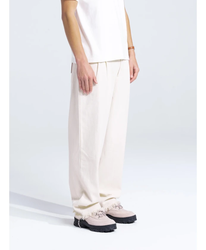 Подчеркните свой стиль с помощью мужских брюк из саржи от Bram's Fruit. Эти брюки с широкими штанинами имеют свободный крой, два передних кармана, два задних кармана и этикетку Bram's Fruit на заднем кармане. Завершает образ потертый низ. Доступны в различных размерах.