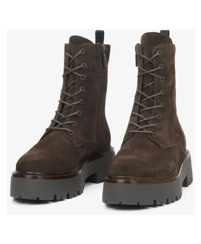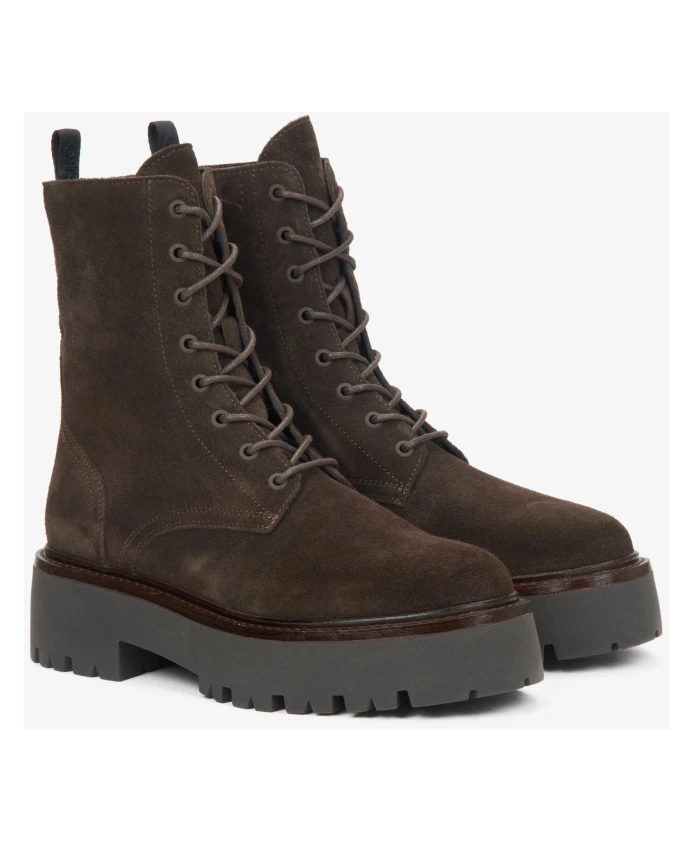 Откройте для себя элегантность этих темно-коричневых ботильонов из натуральной итальянской замши - идеально подходящих для придания изысканности любому образу. Основные характеристики: Коричневый | Натуральная итальянская замша | Размер и посадка: Стандартная посадка |