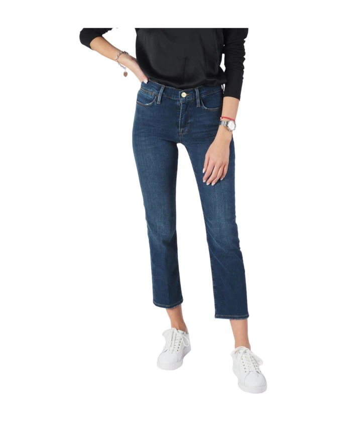 Дополните свой джинсовый образ этими женскими джинсами Frame Le High Straight Cropped Jeans. Изготовленные из эластичного хлопкового денима, эти джинсы длиной до щиколотки имеют классический дизайн с пятью карманами. Рост модели 172 см, размер 26. Код товара: LHST865.