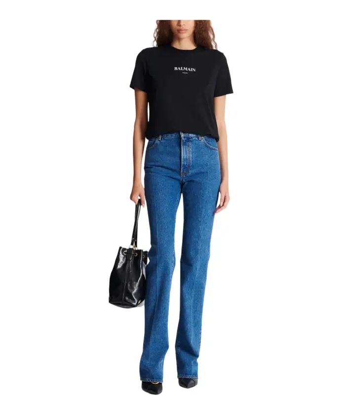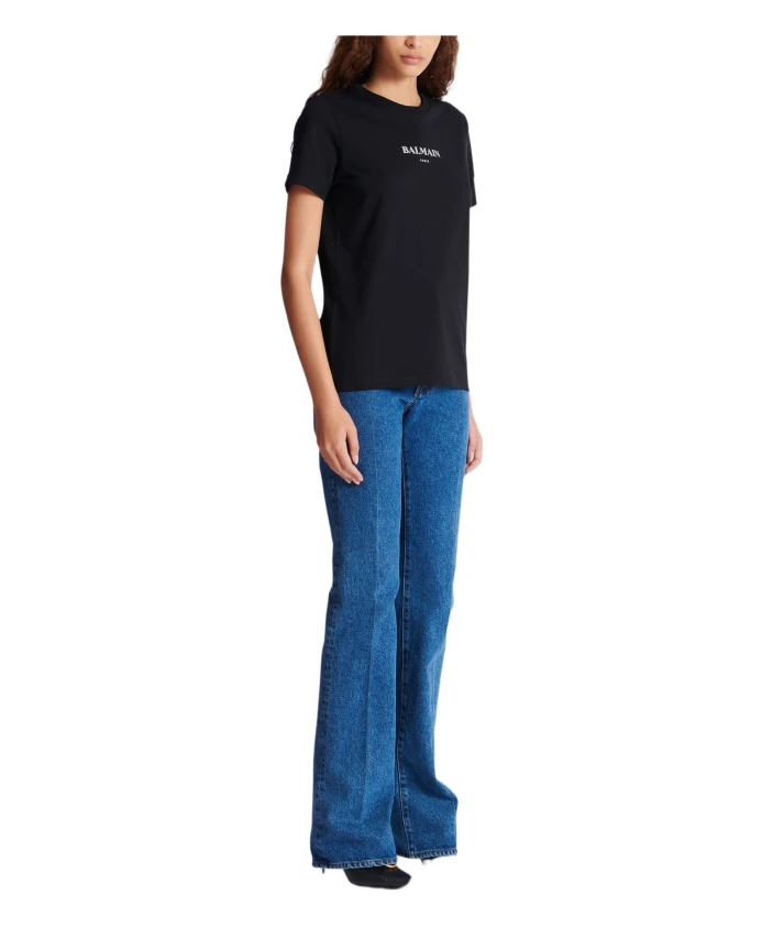 Футболка с принтом Balmain. Стандартный крой. Круглый вырез с ребристой отделкой. Короткие рукава. Контрастный принт с логотипом Balmain Paris на передней части. Рост модели 178 см, размер S. Основной материал: 100% хлопок. Сделано в Португалии. Артикул: FF2EF000BD36