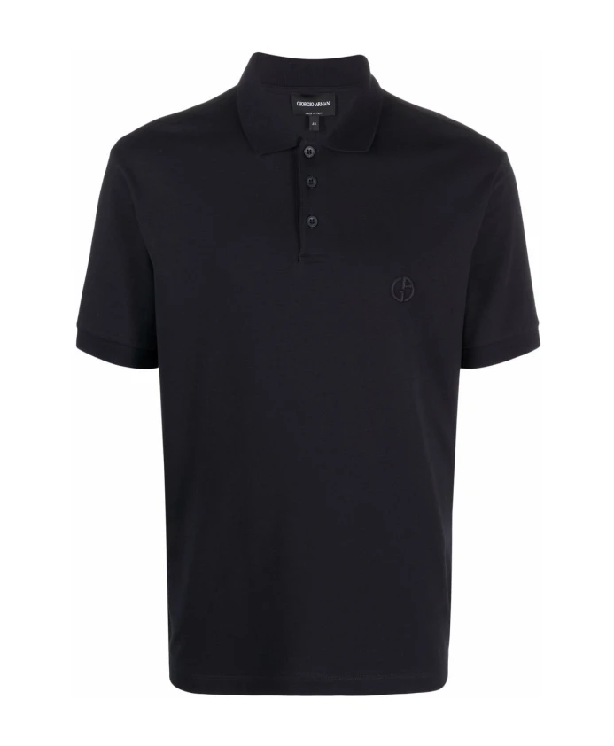 Подчеркните свой повседневный стиль с помощью этой темно-синей поло-рубашки из хлопковой смеси от Giorgio Armani. Она имеет классический воротник-поло, застежку на пуговицах и вышитый логотип на груди. Рубашка имеет короткие рукава, прямой низ и обхват груди 110 см.