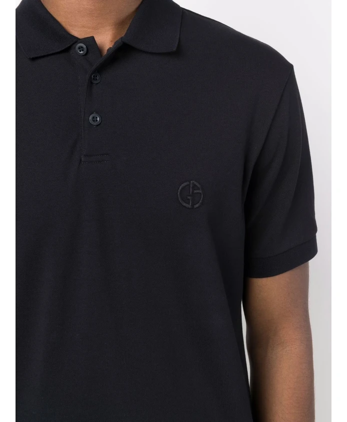 Синяя рубашка-поло с вышитым логотипом. Giorgio Armani, синий
