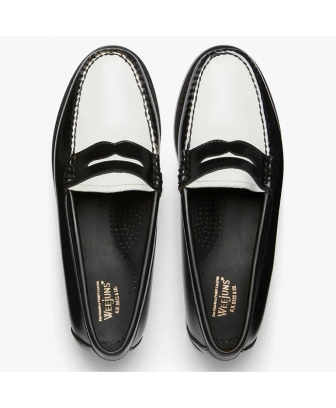 Подчеркните свой стиль с помощью этих классических женских черно-белых лоферов от GH Bass & Co. Модель в стиле «пенни-лофер» изготовлена из полированной кожи с ручной прошивкой швов и прострочкой от пятки до пятки. Изготовлены из 100% натуральной кожи в Сальвадоре.