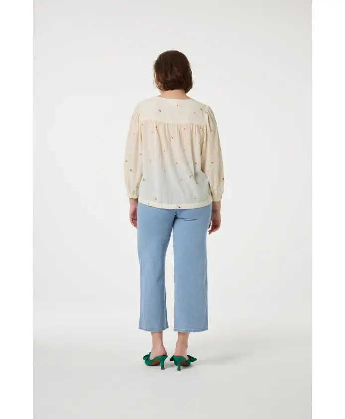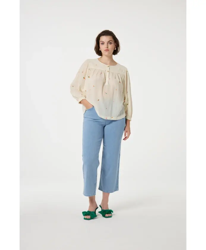 Этот белый топ свободного кроя украшен игривой вышивкой, которая добавляет жизнерадостности классическому дизайну. Изготовленный из смеси вискозы и хлопка, он мягкий и приятный на ощупь - идеально подходит как для повседневных, так и для более нарядных образов.