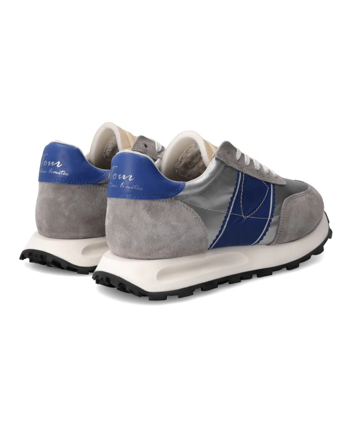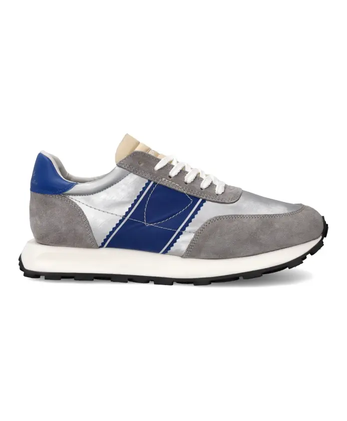 Низкие беговые кроссовки с верхом из ламинированной кожи и замши, с термосварными и прорезиненными поверхностями. Рельефная боковая панель. Подкладка из вспененного хлопка и кожи с мягкой съемной стелькой. Подошва изготовлена из сверхлегкой формованной резины.