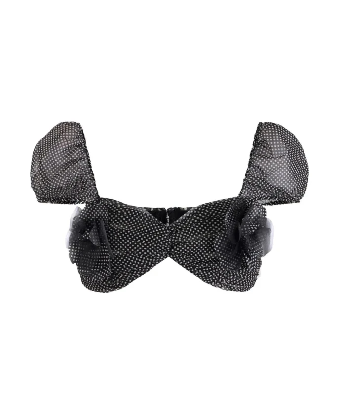 Откройте для себя элегантность топа в горошек от Elisabetta Franchi - стильного дополнения к любому гардеробу. Этот топ с нежным узором в горошек добавит очарования вашему образу. Ключевые особенности: Черный | Черный | Тюль | Принт в горошек | Вышитый цветок