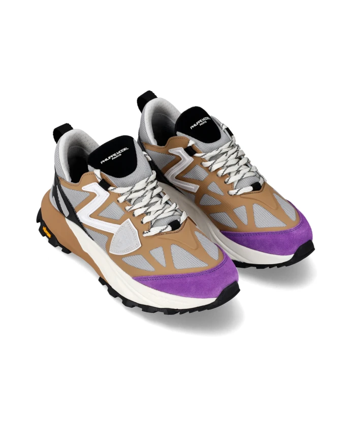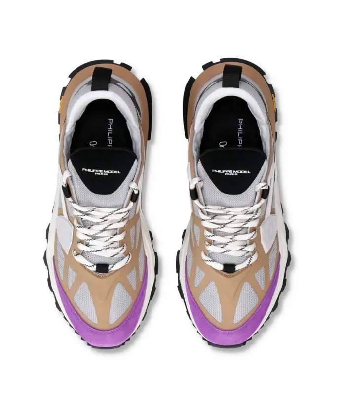 Трекинговые кроссовки с сетчатым верхом и термоклеевыми аппликациями с прорезиненным покрытием. Съемная стелька Ortholite из технической ткани и вспененного хлопка. Подкладка из вспененного хлопка. Эксклюзивная резиновая подошва Philippe Model Paris Vibram.