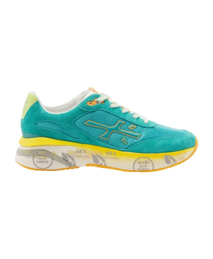 Откройте для себя кроссовки MOERUN от Premiata, созданные с использованием сочетания сетки, кожи и замши для стильного внешнего вида и комфорта. Ключевые особенности: Синий | Сетка, кожа, замша | Яркие детали | Эксклюзивная подошва | Логотип Premiata сбоку |