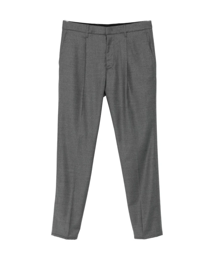 Подчеркните свой стиль с помощью этих зауженных мужских брюк Dondup. Они выполнены в сером цвете, имеют петли для ремня, складки спереди, боковые швы, задние прорезные карманы и скрытую застежку спереди. Изготовлены из 99% натуральной шерсти и 1% эластана.