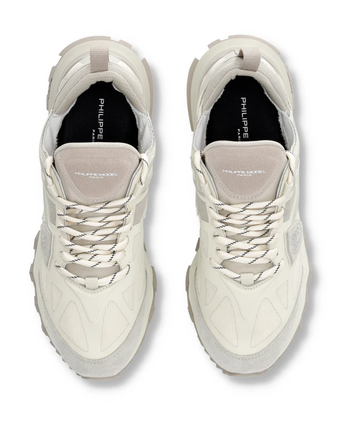 Трекинговые кроссовки с сетчатым верхом и термосварными вставками с прорезиненным покрытием. Съемная стелька Ortholite из технической ткани и вспененного хлопка. Подкладка из вспененного хлопка. Эксклюзивная резиновая подошва Philippe Model Paris Vibram.
