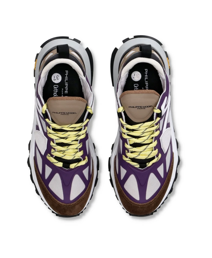 Верх выполнен из нейлоновой сетки с термосварными вставками из нейлоновой микрофибры. Верх на основе технологии Strobel. Эксклюзивная резиновая подошва Philippe Model Paris от Vibram. Стелька Fousbet Ortholite из хлопка-полиэстера и вспененного хлопка.