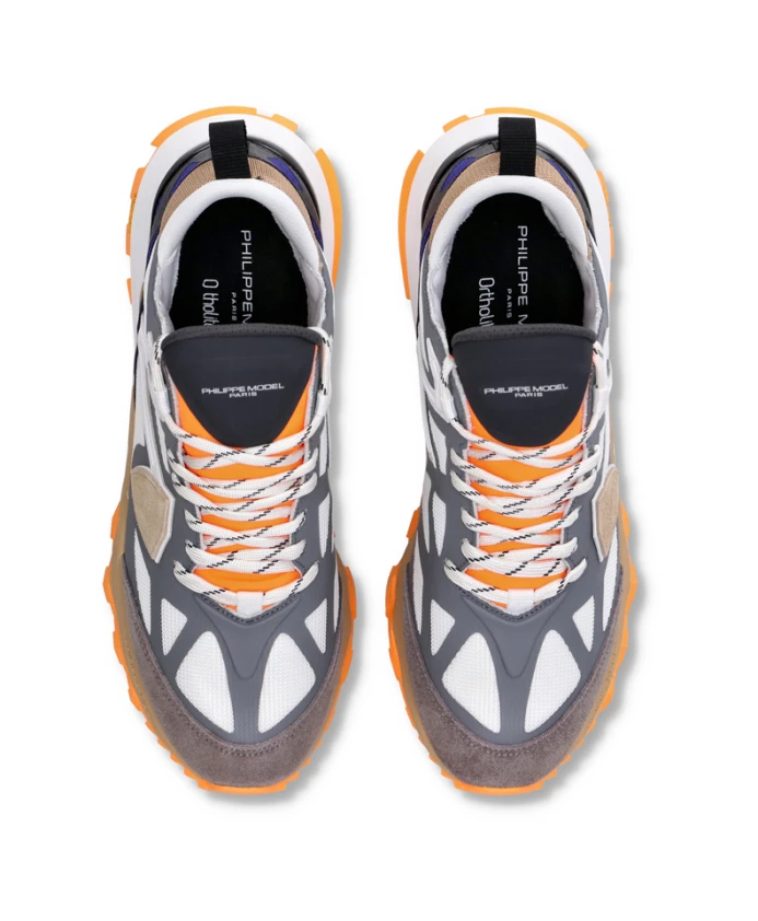 Верх выполнен из нейлоновой сетки с термосварными вставками из нейлоновой микрофибры. Верх на основе технологии Strobel. Эксклюзивная резиновая подошва Philippe Model Paris от Vibram. Стелька Fousbet Ortholite из хлопка-полиэстера и вспененного хлопка.