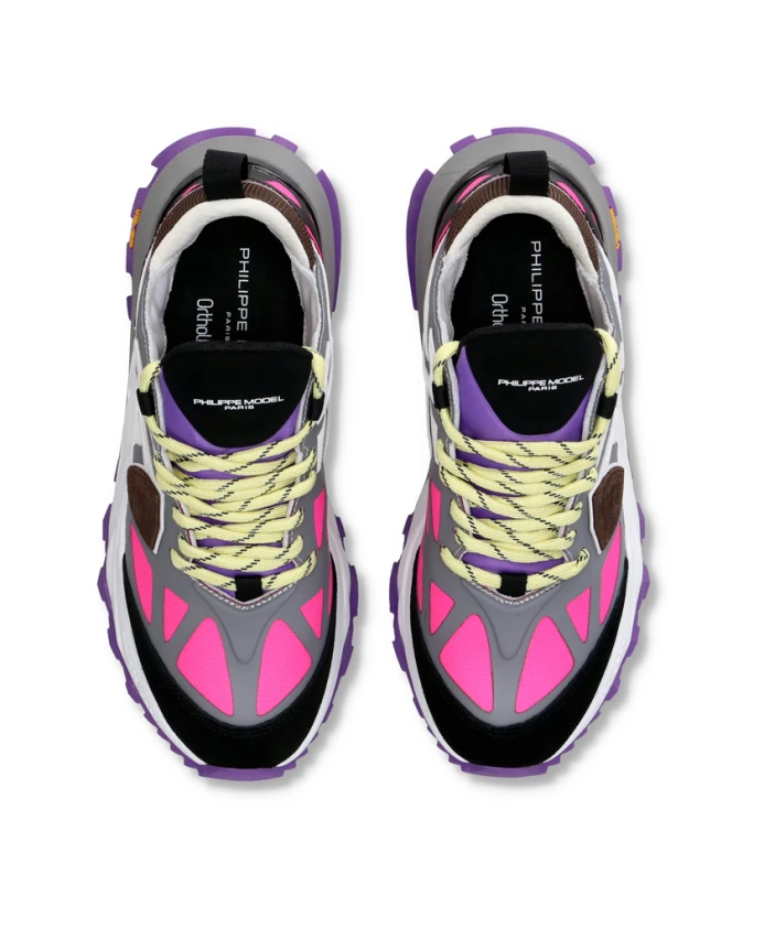 Верх выполнен из нейлоновой сетки с термосварными вставками из нейлоновой микрофибры. Верх на основе технологии Strobel. Эксклюзивная резиновая подошва Philippe Model Paris от Vibram. Стелька Fousbet Ortholite из хлопка-полиэстера и вспененного хлопка.