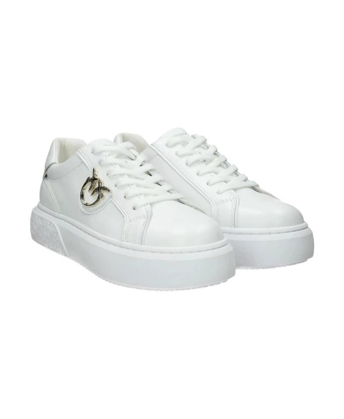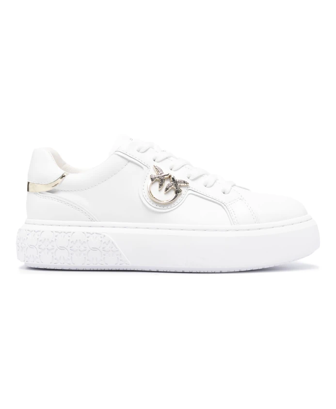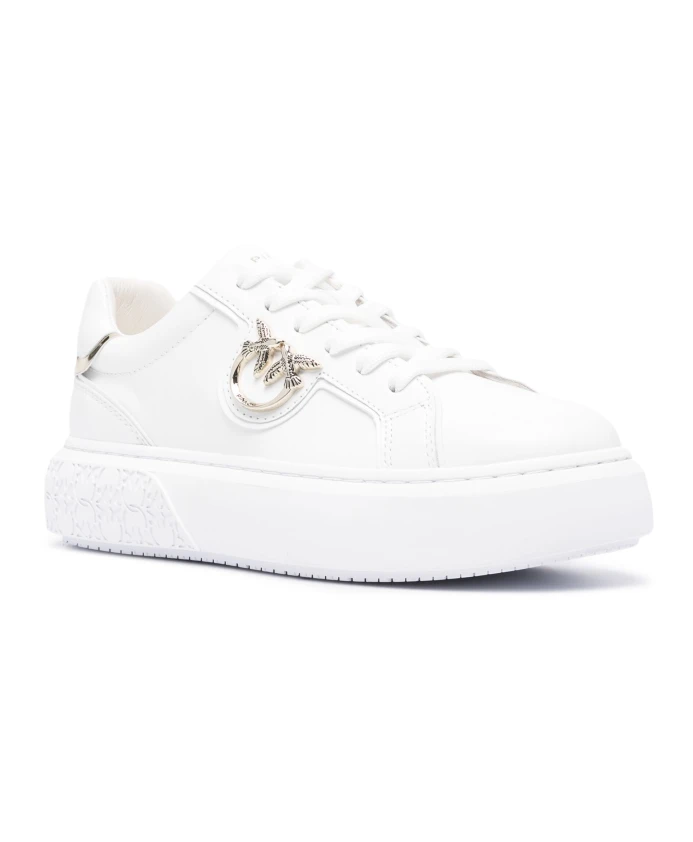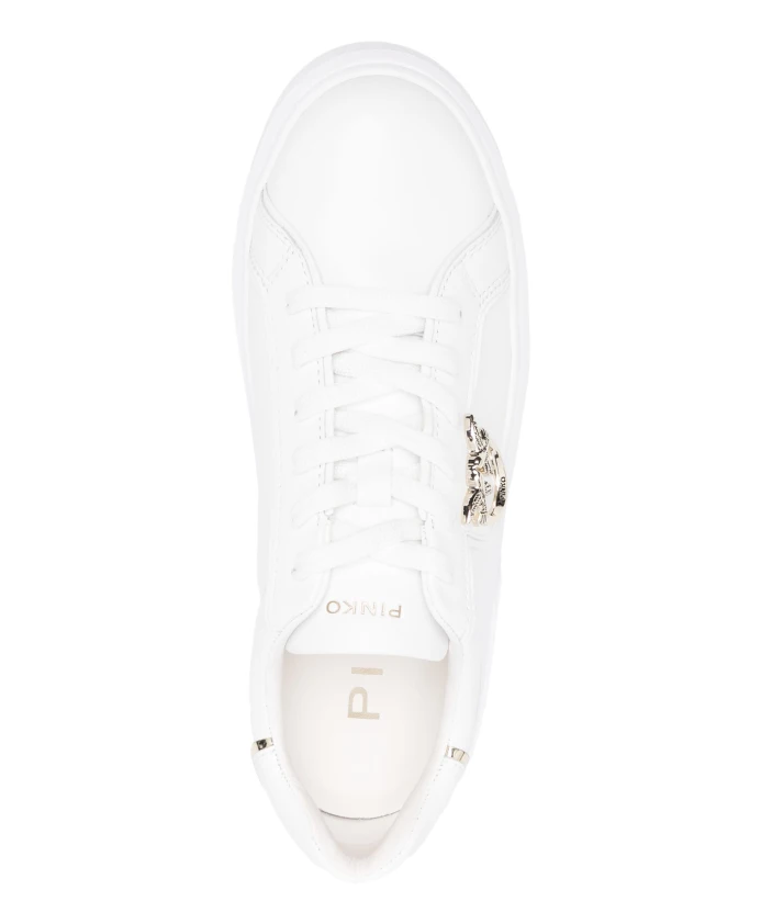 Кожаные кроссовки на платформе с золотым логотипом Pinko, белый