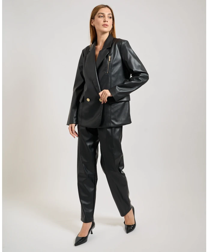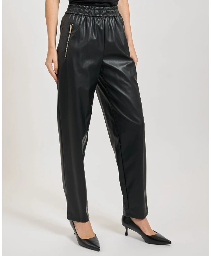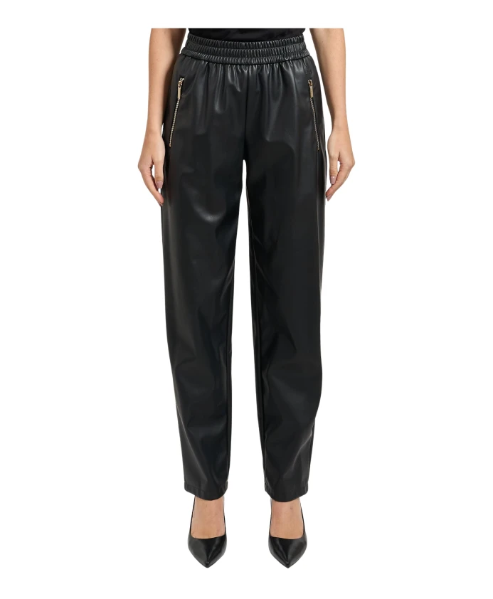Подчеркните свой стиль с помощью этих женских брюк с покрытием от Armani Exchange. Мягкий силуэт и эластичный пояс обеспечивают комфорт и свободную посадку, а декоративные молнии добавляют современный штрих. Модель носит размер 40 и имеет рост 170 см.