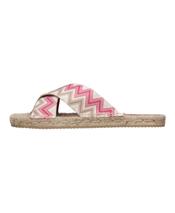 Подчеркните свой летний стиль с помощью этих шлепанцев Missoni. Они имеют верх из ткани с зигзагообразным узором, кожаную и тканевую стельку и резиновую подошву. Каждая пара уникальна благодаря последовательности рисунка. Изготовлены из ткани и кожи.