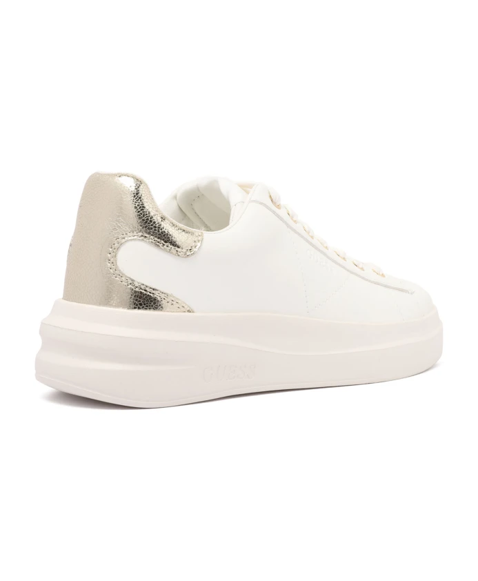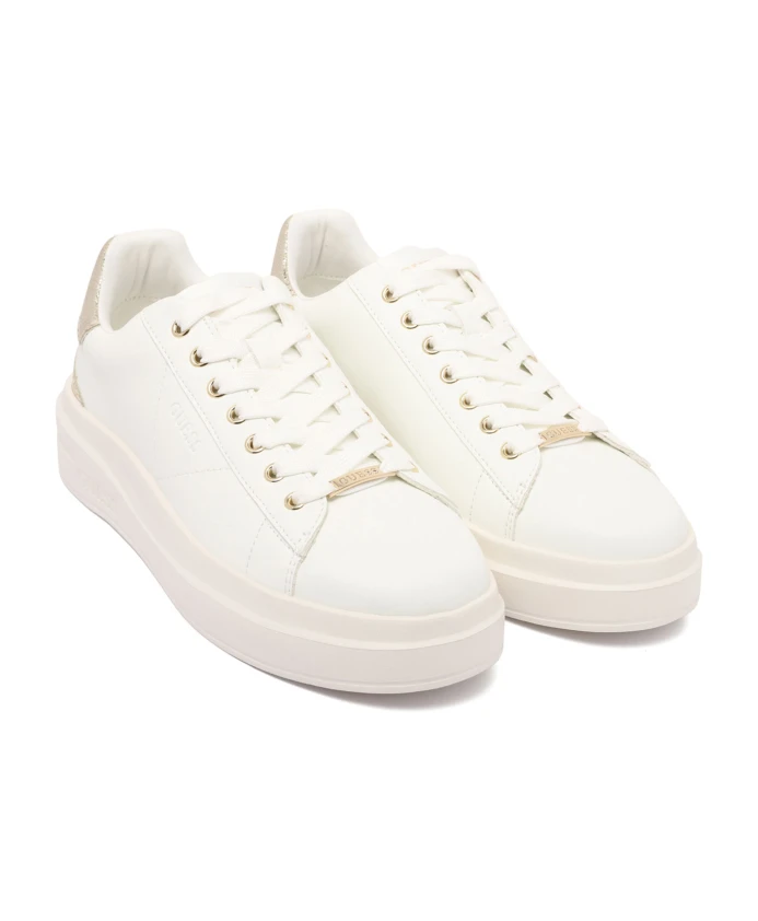 Подчеркните свой стиль с помощью этих белых кроссовок Guess Elbina. Изготовленные из белой кожи, со шнуровкой, массивной резиновой подошвой, фирменной стелькой и металлическим задником, эти кроссовки станут незаменимым аксессуаром для каждой модницы.