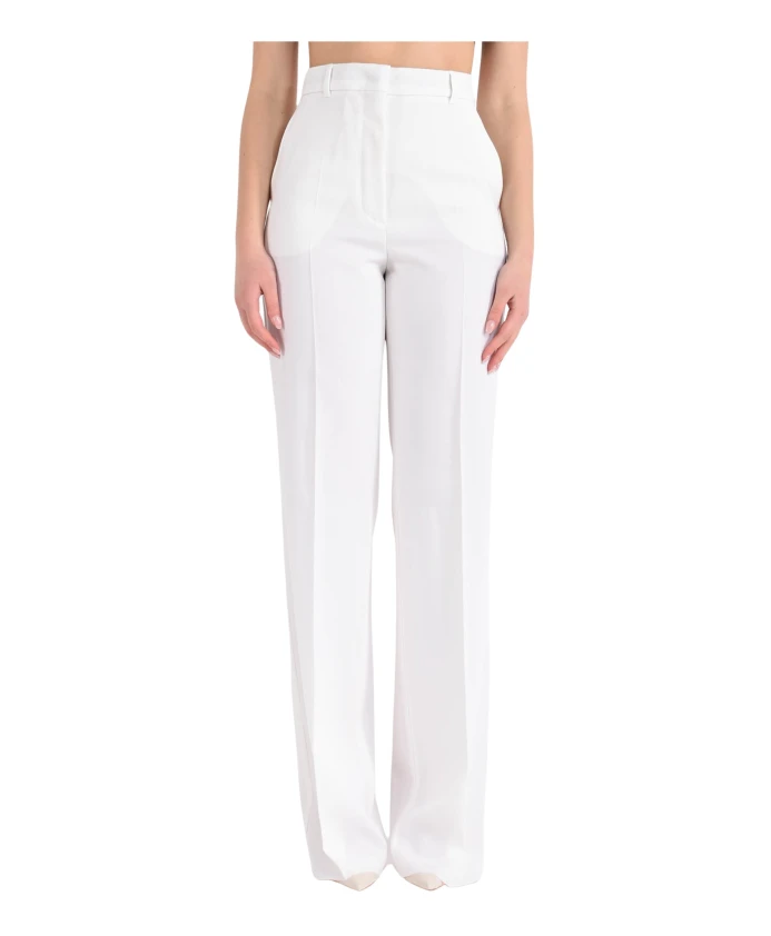 Прямые атласные шерстяные брюки, модель Quasar. Max Mara Studio, белый
