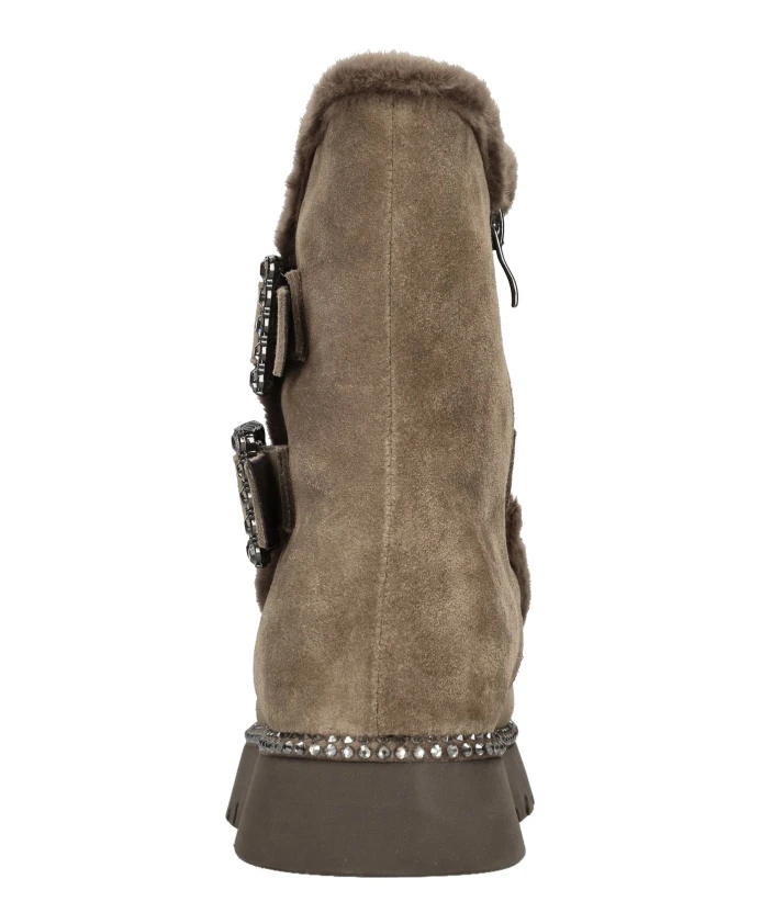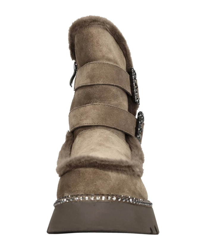 Подчеркните свой зимний стиль с помощью этих замшевых ботильонов ALMA EN PENA. Украшенные декоративными стразами и пряжками с драгоценными камнями, эти ботильоны имеют резиновую подошву и тканевую подкладку, идеально подходящие для холодных месяцев.