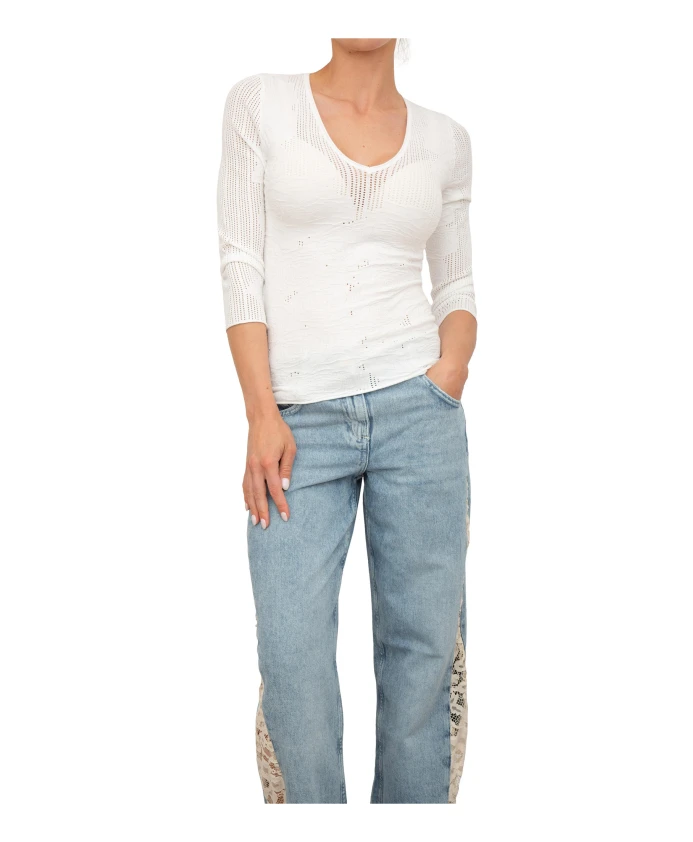 Белый топ из вискозы с V-образным вырезом Blugirl, белый