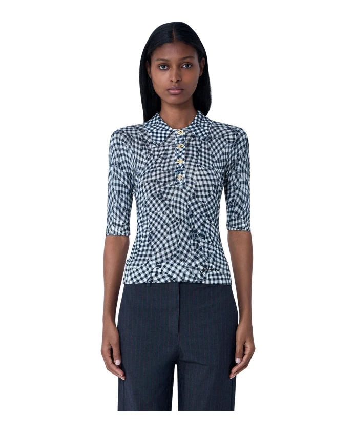 Поло с принтом из сетчатой ткани Ganni, мультиколор