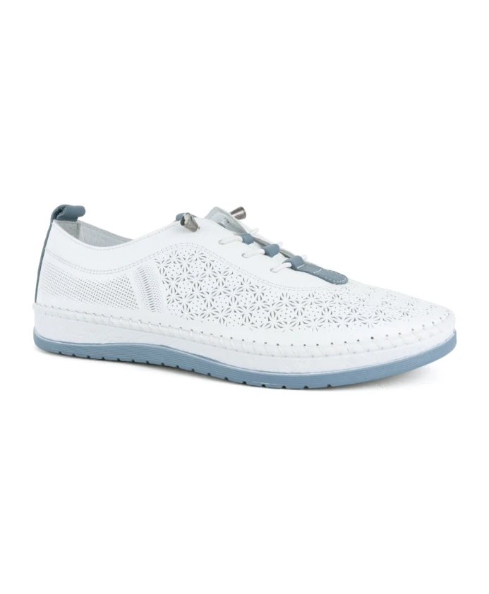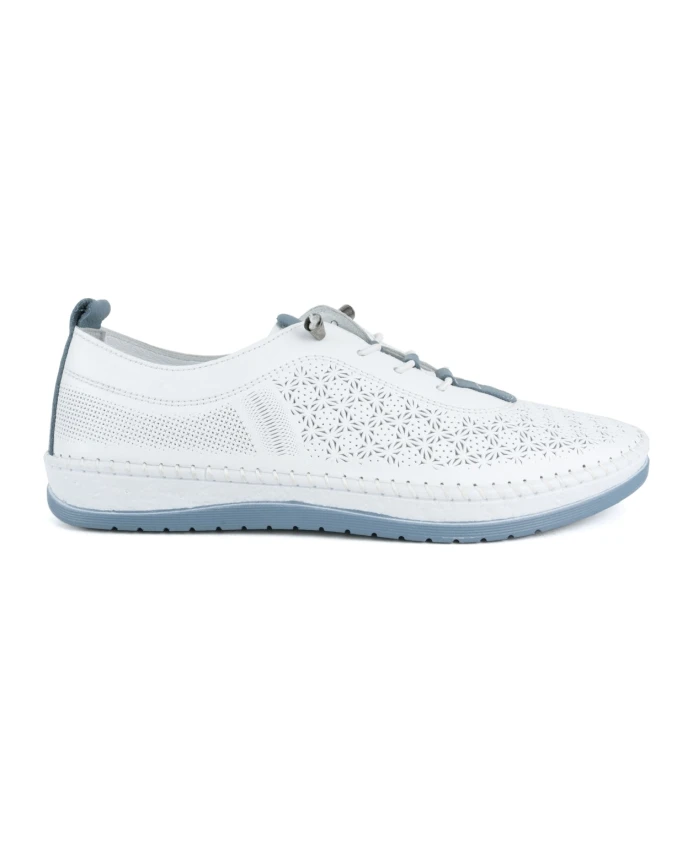 Купите женские белые кожаные кроссовки La Conte. Идеально подходящие для взрослых, эти стильные кроссовки имеют кожаный верх, кожаную подкладку и резиновую подошву. Код товара: LAC6030-25101. Производитель: Shoes distribution UAB, Вильнюс, Литва.