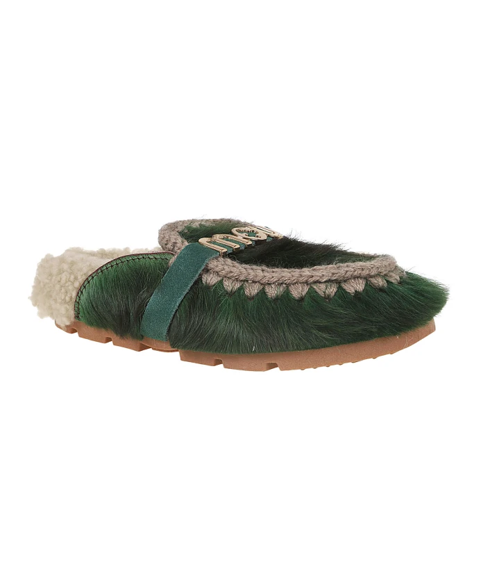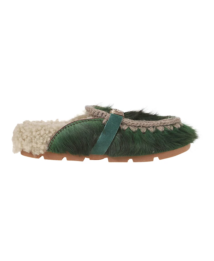 Зеленые тапочки из овчины aw24 Mou, зеленый