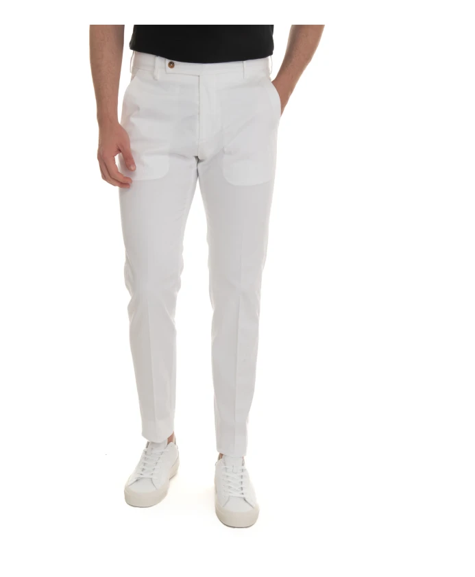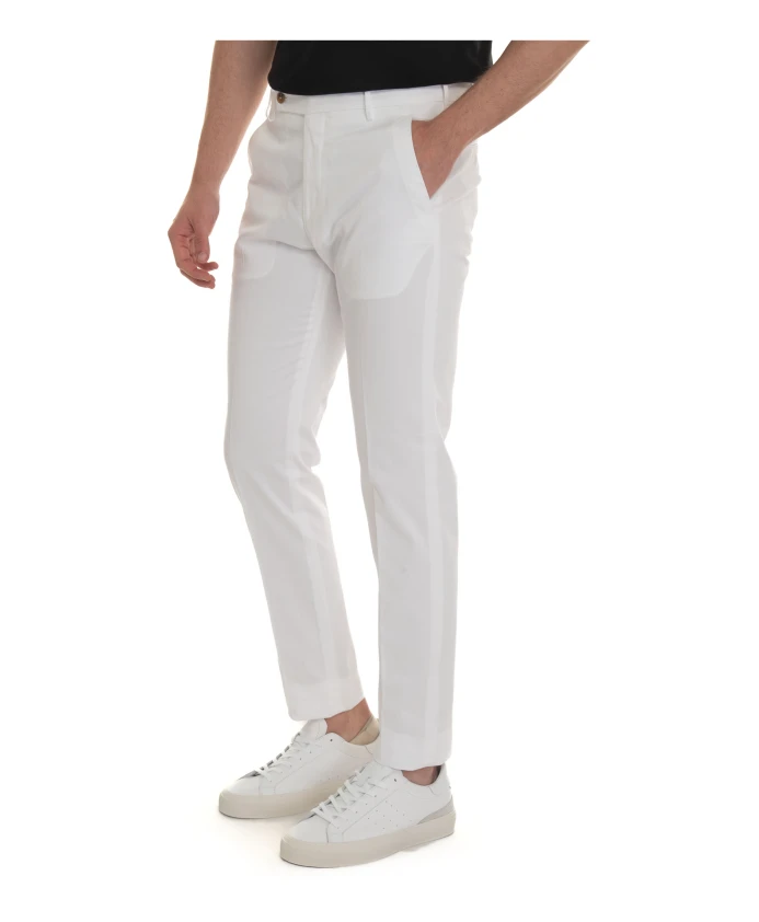 Подчеркните свой стиль с помощью зауженных брюк-чинос Berwick MORELLO. Застежка на пуговицу и потайную молнию, клапан, подкладка с рисунком в виде плитки и длина штанин 15 см. Состав: 98% хлопок и 2% эластан. Откройте для себя качество Berwick.