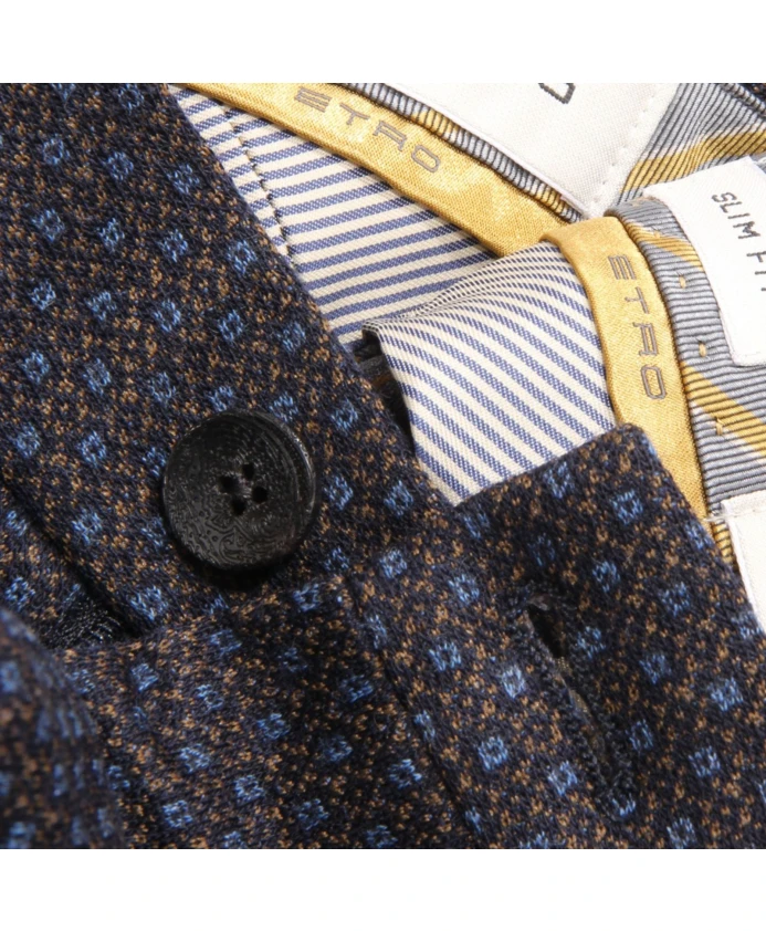 Брюки из шерсти с узором Etro, синий