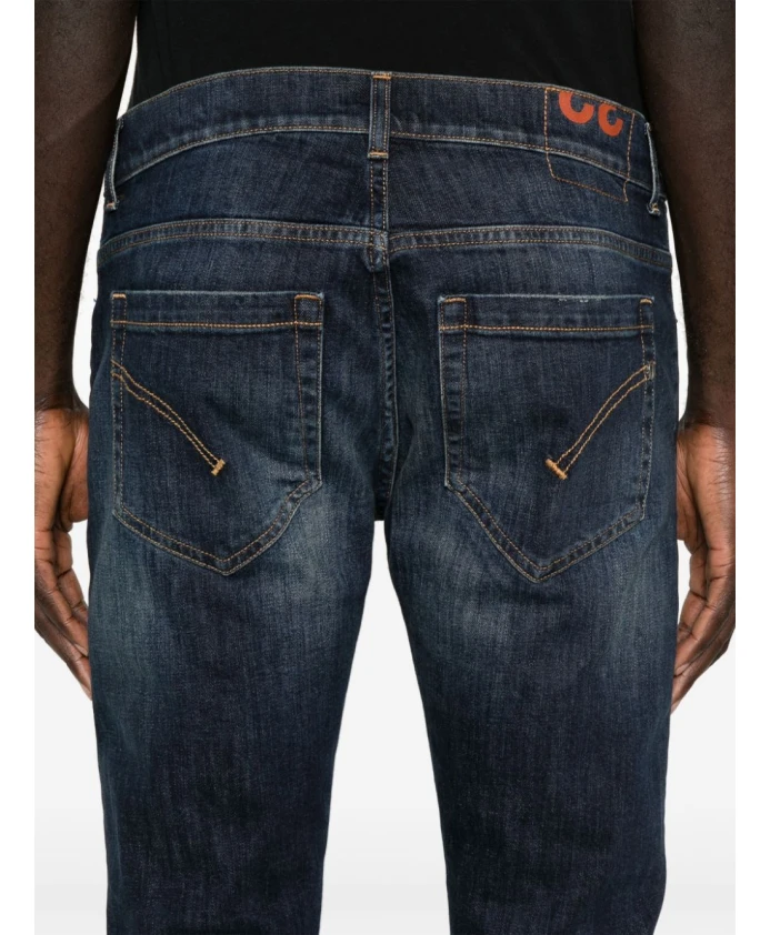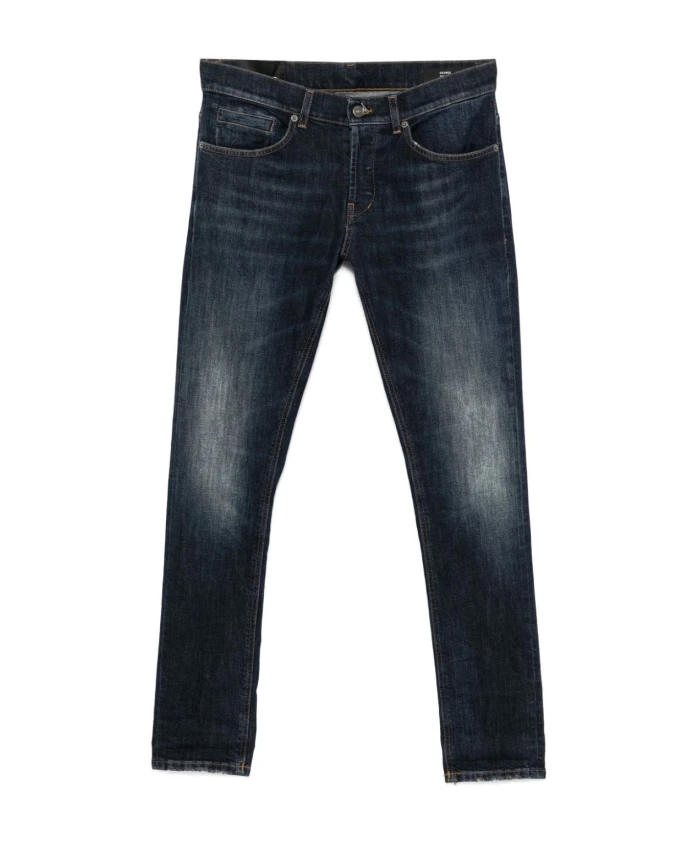 Подчеркните свой стиль с помощью этих узких джинсов Dondup из выстиранного денима цвета индиго. Джинсы с застежкой на пуговицах, низкой посадкой и классическими пятью карманами, а также эффектом потертости и логотипом придают им изысканность.
